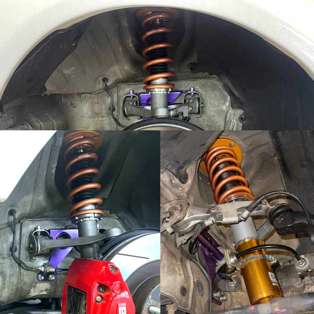 峠・高速道路などギャップがあるシーンも考慮して開発したストリートからサーキットまで使えるオリジナルサスペンションキットです。 仕様:OHLINS DFV(専用加工)+swiftスプリング バネレート:14or16kgf/mm(選択可)