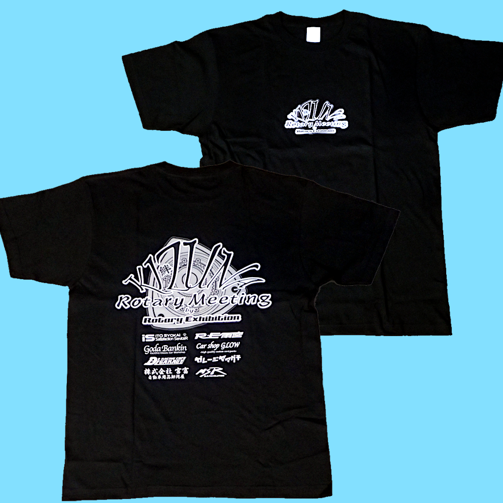 運営8社(ITO SYOKAI、RE雨宮、Goda Bankin、Car shop GLOW、D'zgarage、ガレージヤマグチ、株式会社 宮富、MSR)のロゴが入った7Day絆ロータリーミーティングTシャツです。